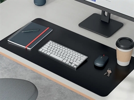 Med Leitz Large skriveunderlag får du en vandtæt skrivebordsbeskyttelsesmåtte, der er nem at rengøre, og som holder dit skrivebord pænt. Den store overflade på 80 x 40 giver plads til tastatur, mus, notesblok og tilbehør