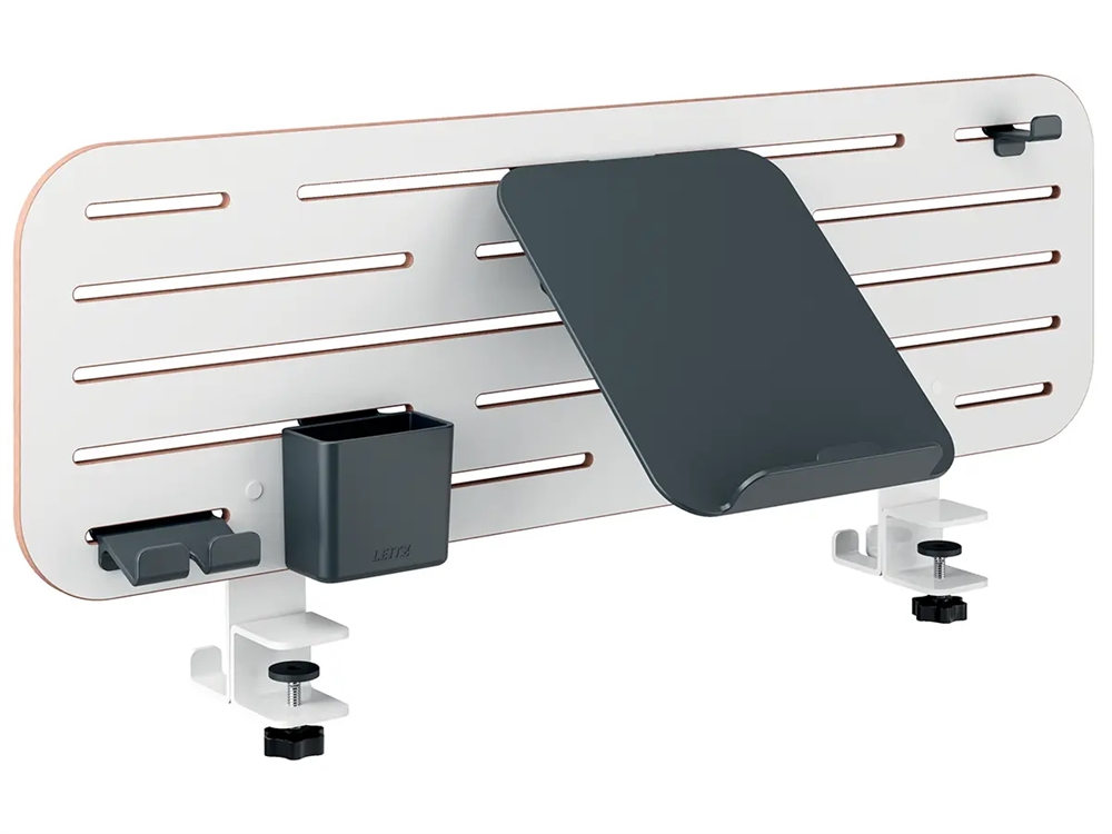 Hold dit skrivebord ryddeligt og få mest muligt ud af den tilgængelige plads med Leitz Ergo pegboard organseringstavle til skrivebordet med laptop holder. Denne unikke organiseringstavle er nem at montere på et skrivebord